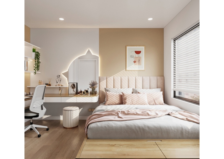 - Liên kết sử dụng: cam chốt, liên kết âm, vít, bát V, đảm bảo tính thẩm mỹ, và chắc chắn
