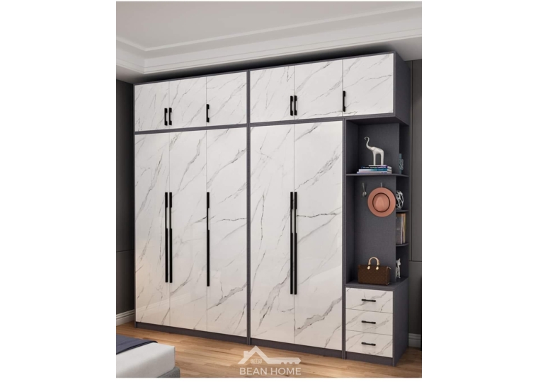 - Cánh tủ sử dụng: Tay nắm tủ inox 304 sơn tĩnh điện màu vàng, bạc, đen hoặc tay nắm móc âm theo thiết kế