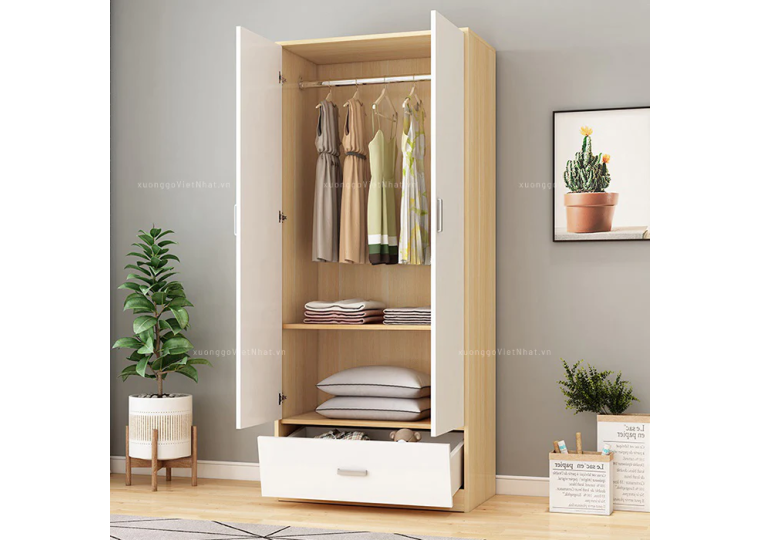 - Hậu tủ sử dụng Gỗ MDF chống ẩm phủ Melamine của An Cường dày 9mm