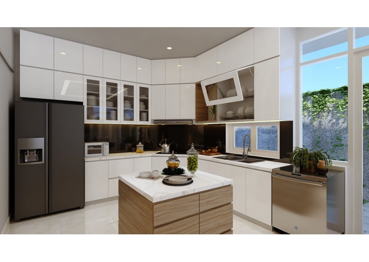 - Tủ bếp trên kịch trần: 1.25m * 0.35m (chiều cao * chiều sâu)