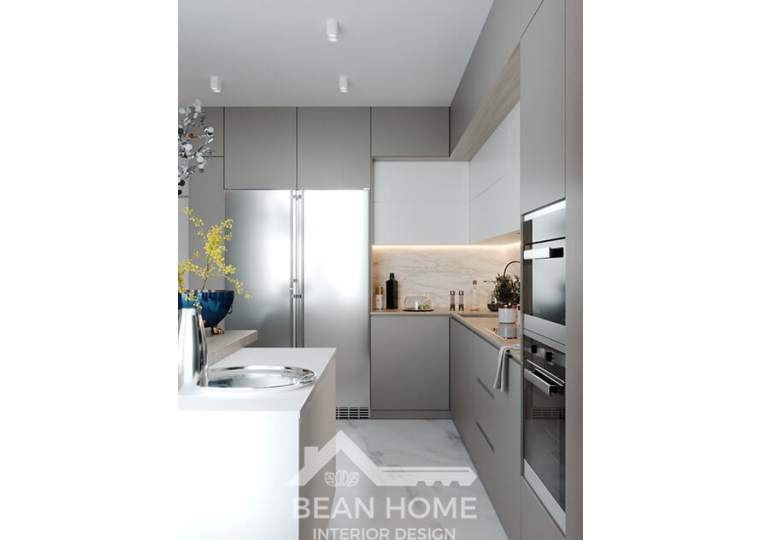 - Tủ bếp trên kịch trần: 1.45m * 0.35m (chiều cao * chiều sâu)