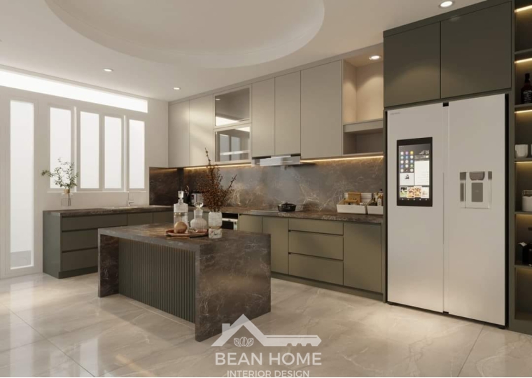 - Tủ bếp trên kịch trần: 1.35m * 0.35m (chiều cao * chiều sâu)